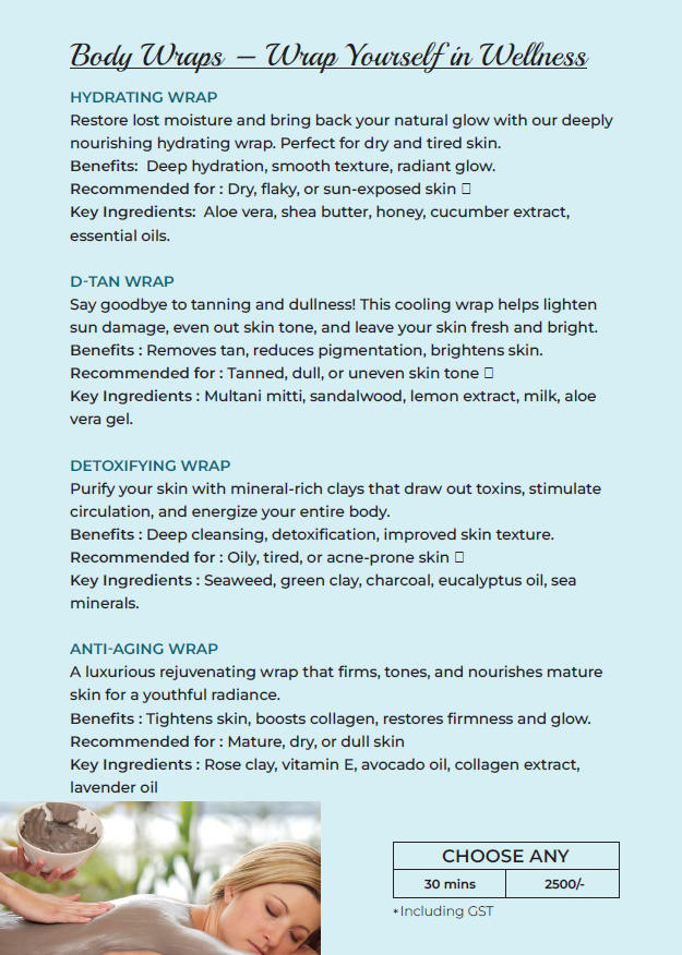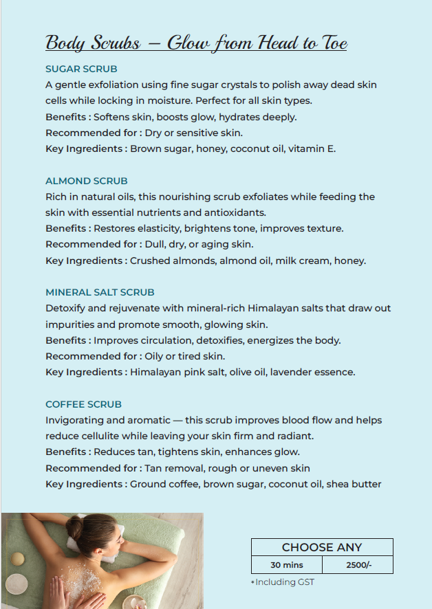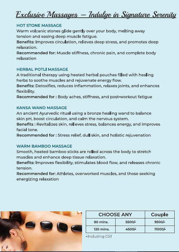 Indulge in thoughtfully curated therapies designed to relax, restore, and rejuvenate your body and mind.